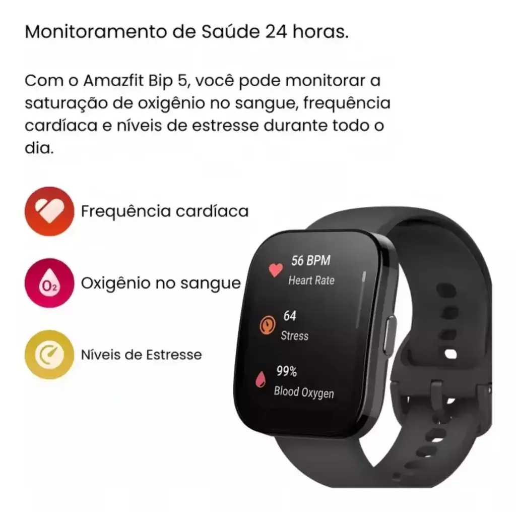 Invista no Amazfit Bip 5 e leve consigo um aliado inteligente para alcançar seus objetivos de saúde, esportes e bem-estar com confiança e estilo. Garanta já o seu!