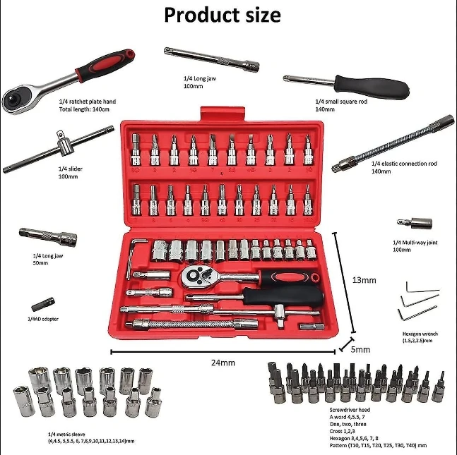 - Chave de catraca de queda rápida (ajustável positiva e negativa), o recurso de liberação rápida do botão de pressão garante que o soquete seja travado com segurança durante o uso, mas também permite fácil remoção ou troca rápida de soquete