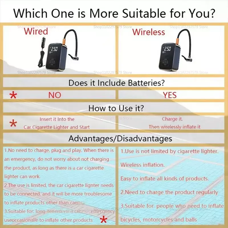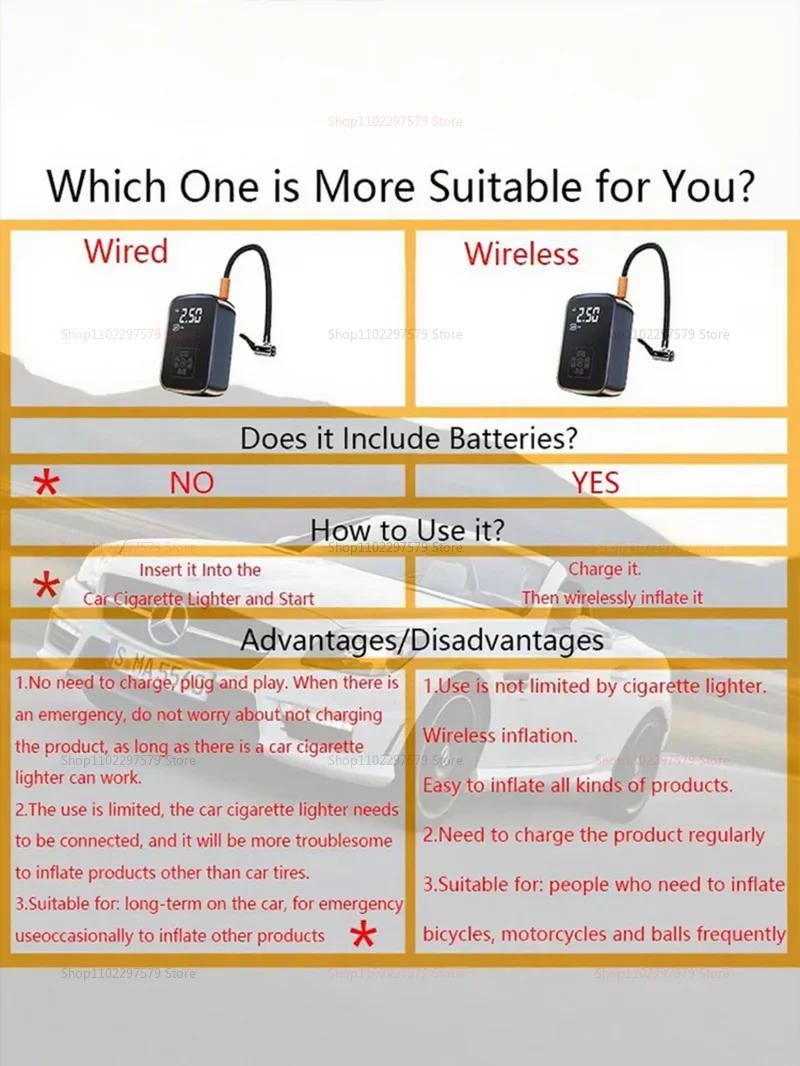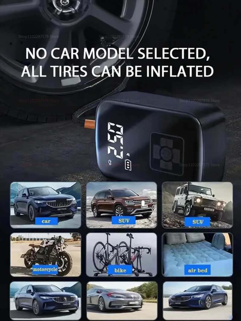 Experimente o inflado e a manutenção dos pneus sem esforço com esta versátil bomba de ar recarregável sem fio para carro - ideal para carros, motocicletas, bicicletas, bolas esportivas e brinquedos infláveis. Equipado com um potente motor de 100 W, oferece uma faixa de pressão de ar de 3 a 150 PSI, permitindo uma inflação rápida e precisa para uma variedade de infláveis. Apresentando funções avançadas, incluindo medição de pressão, iluminação embutida para uso conveniente em condições de pouca luz, carregamento e parada automáticos e cinco modos infláveis ajustáveis - este compressor de ar portátil garante desempenho ideal em vários cenários. As vias aéreas duráveis (15 cm de comprimento) e a alta vazão de gás de 40L/min promovem uma inflação rápida, diminuindo os tempos de espera durante momentos movimentados. Fabricado em ABS e componentes eletrônicos de alta qualidade, o design compacto (12,4 * 8 * 4 cm) permite fácil armazenamento e transporte - perfeito para uso de emergência na estrada, aventuras ao ar livre ou necessidades de inflação em movimento. Alimentado por uma bateria recarregável de 7,4 V com capacidade de 3600mAh, ele suporta operação sem fio com uma autonomia de 15 a 25 minutos por carga - ideal para soluções rápidas ou múltiplas inflações. O carregamento é simples através do cabo USB incluído, com recarga completa levando aproximadamente 3-4 horas. O pacote inclui uma bomba de ar recarregável sem fio para carro, três bicos de gás para versatilidade, tubo de ar flexível, cabo de carregamento USB e manual do usuário - fornecendo tudo o que você precisa para uma inflação rápida e conveniente onde quer que você esteja. Seja para encher pneus, equipamentos esportivos ou brinquedos infláveis, esta bomba de ar portátil é sua solução multifuncional e confiável para inflar sem complicações sob demanda.