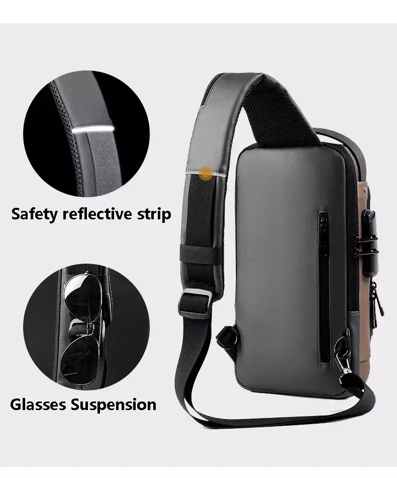 Número do modelo: Men Multifunction Anti-theft USB Shoulder Bag Crossbody Bag Travel Sli