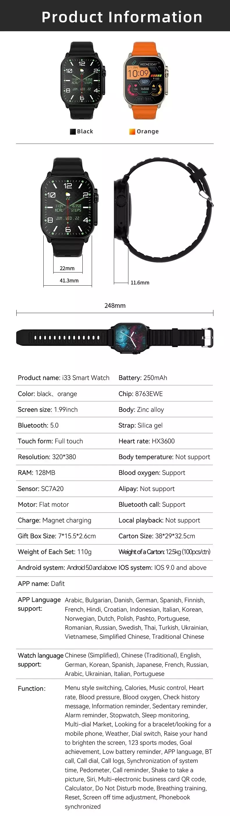 5. outras funções: gire o pulso para iluminar a tela, modo de baixo consumo de energia, modo silencioso, anti-perda, controle de foto, controle de música, cronômetro, despertador, calendário, calculadora.
